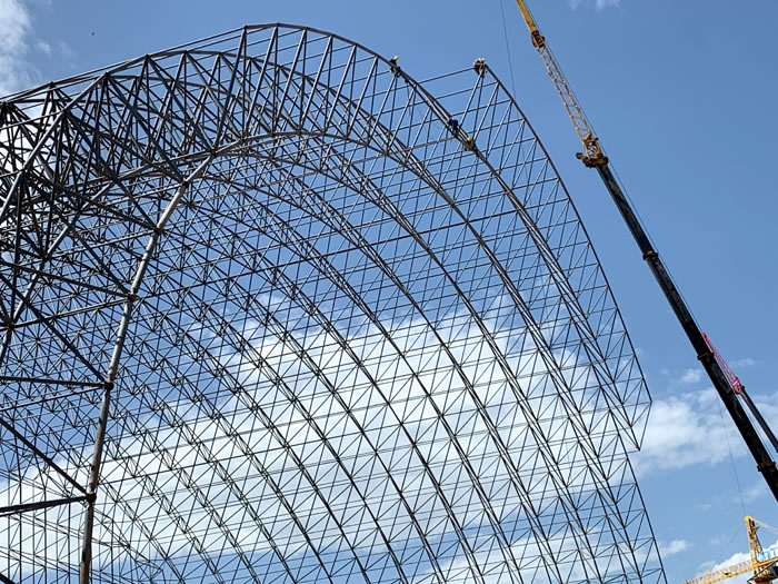 (2)网架加工前应对现场尺寸进行复测,确认无误后方可进行加工、安装;网架制作、运输、安装应遵守《空间网格结构技术规程》JGJ7-2010、《钢网架曲靖螺栓球节点》JG/T 10-2009、《钢网架曲靖螺栓球节点用高强度螺栓》 GB/T 16939-2016、《曲靖钢结构曲靖工程曲靖施工规范》 GB50755-2012、《曲靖钢结构曲靖工程施工质量验收标准》 GB50205-2020。